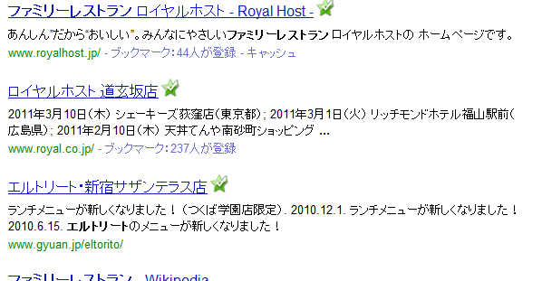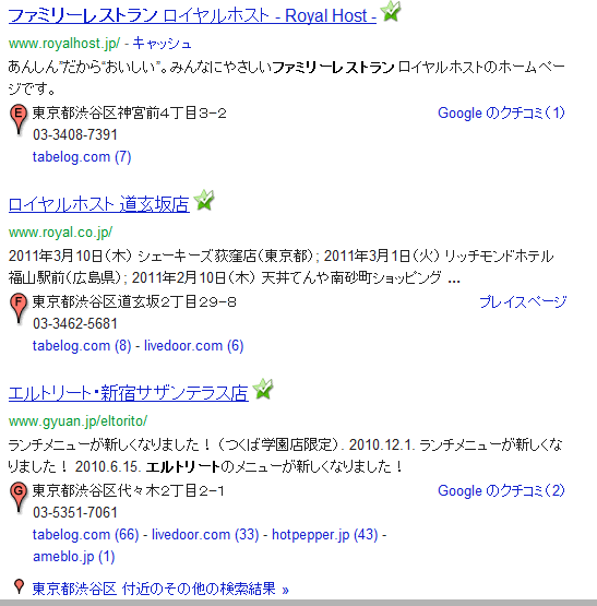 Googleで「ファミレス」と検索した時に、以下のようになります。
