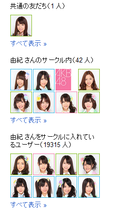| 柏木由紀 | 42 | 19074 | AKB48/寝ても覚めてもゆきりんワールド!!夢中にさせちゃうぞ♪ゆきりんこと柏木由紀です。 |
