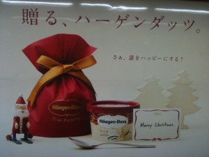 新宿でクリスマス仕様のハーゲンダッツの広告があって、色合いが綺麗だったので撮影。