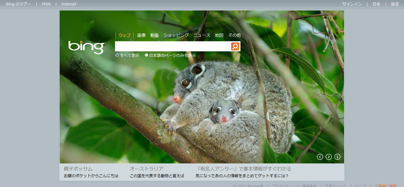 説明とBing検索への誘導がされています。