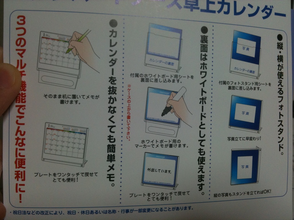 先日いただいた卓上カレンダーに白い紙が入っていました。