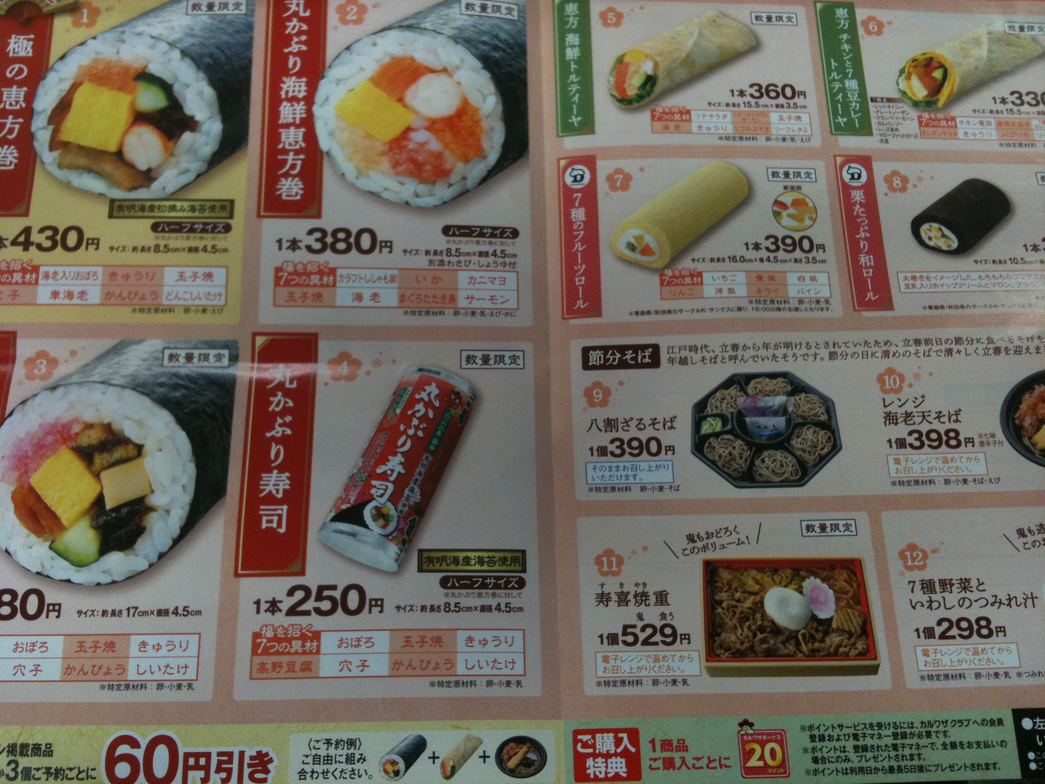 まあ普通の恵方巻きの見開きのチラシなんですが、恵方巻きの広告が左側。