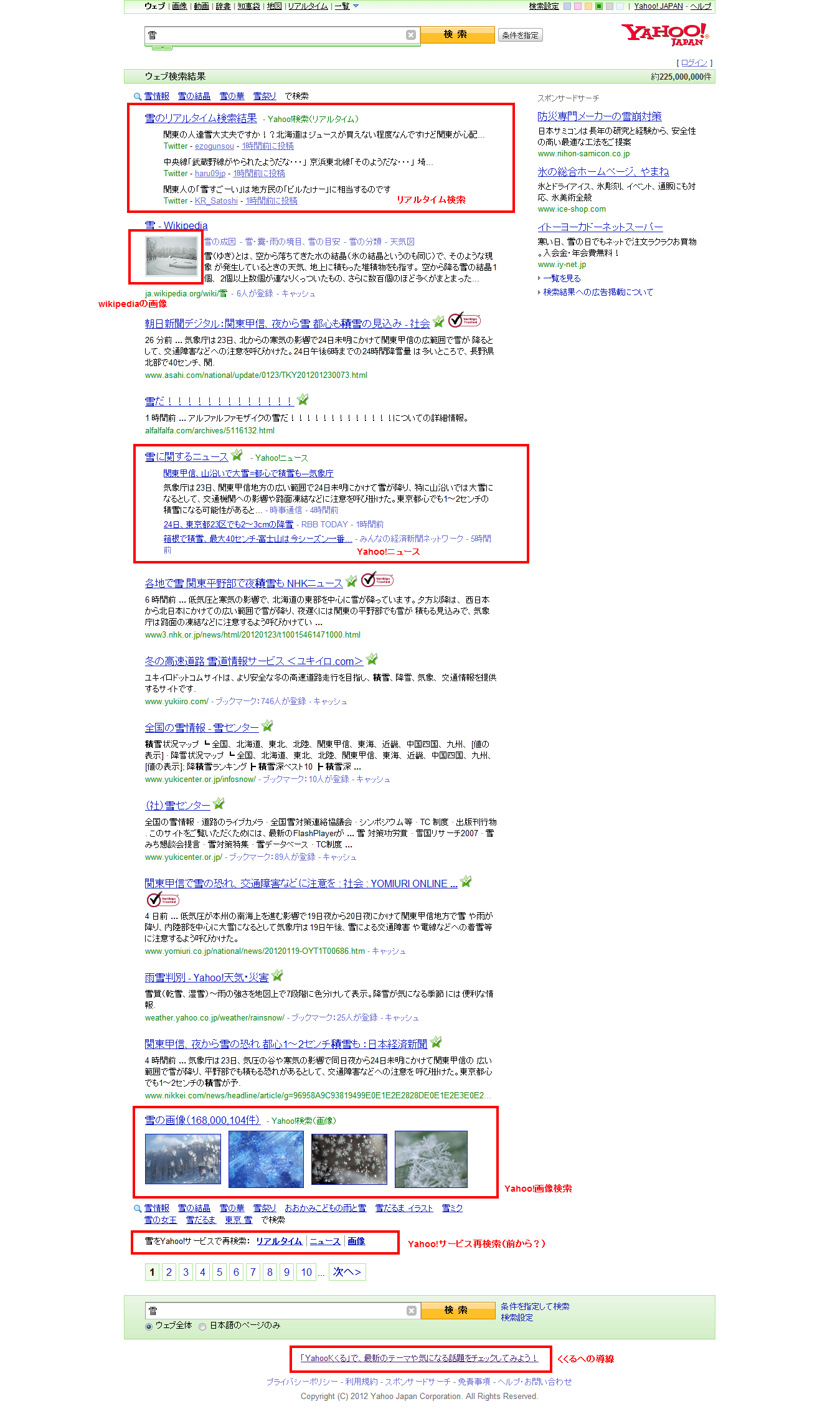Yahoo!(「雪」検索結果 2012.1.23 23:15)