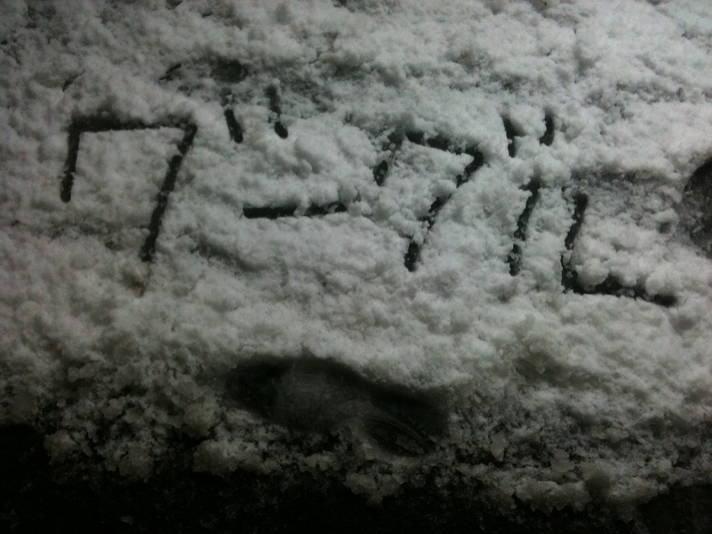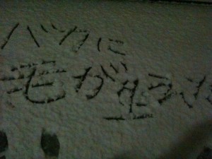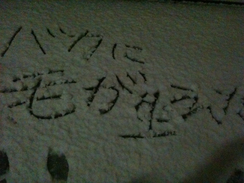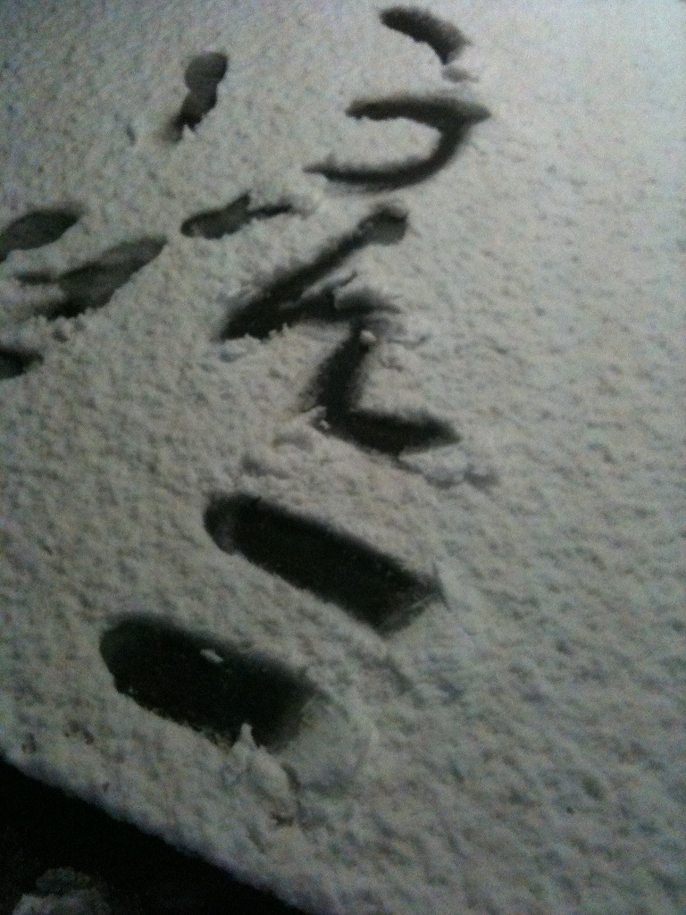 童心に帰っていろんなものを雪上に書いてきました。