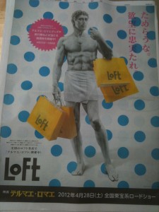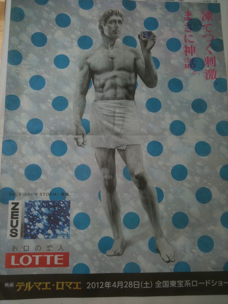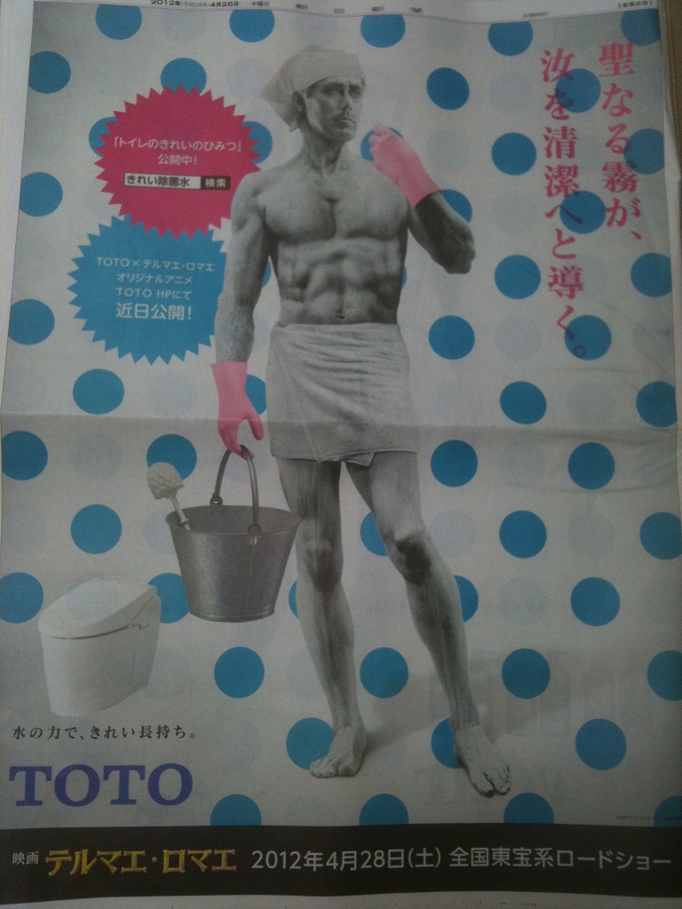 今日は4/26(よい風呂の日)ということで「テルマエ・ロマエ」(ルシウスの石像姿)が新聞広告に掲載されていました。