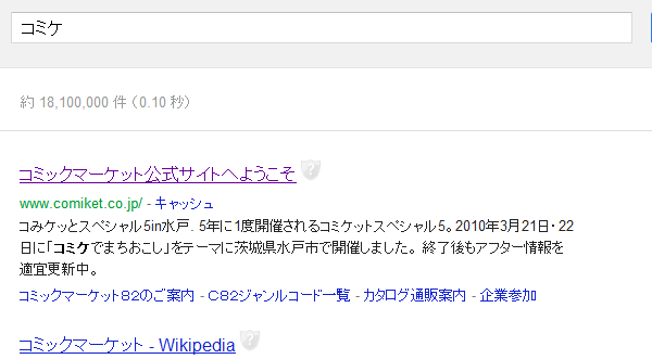 コミケだコミケだと騒がれているものの日程がよく分からなかったので「コミケ」で検索したわけですが、その際に非常に気になる結果になったので更新してみます。