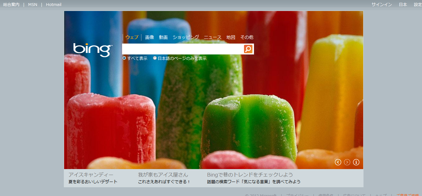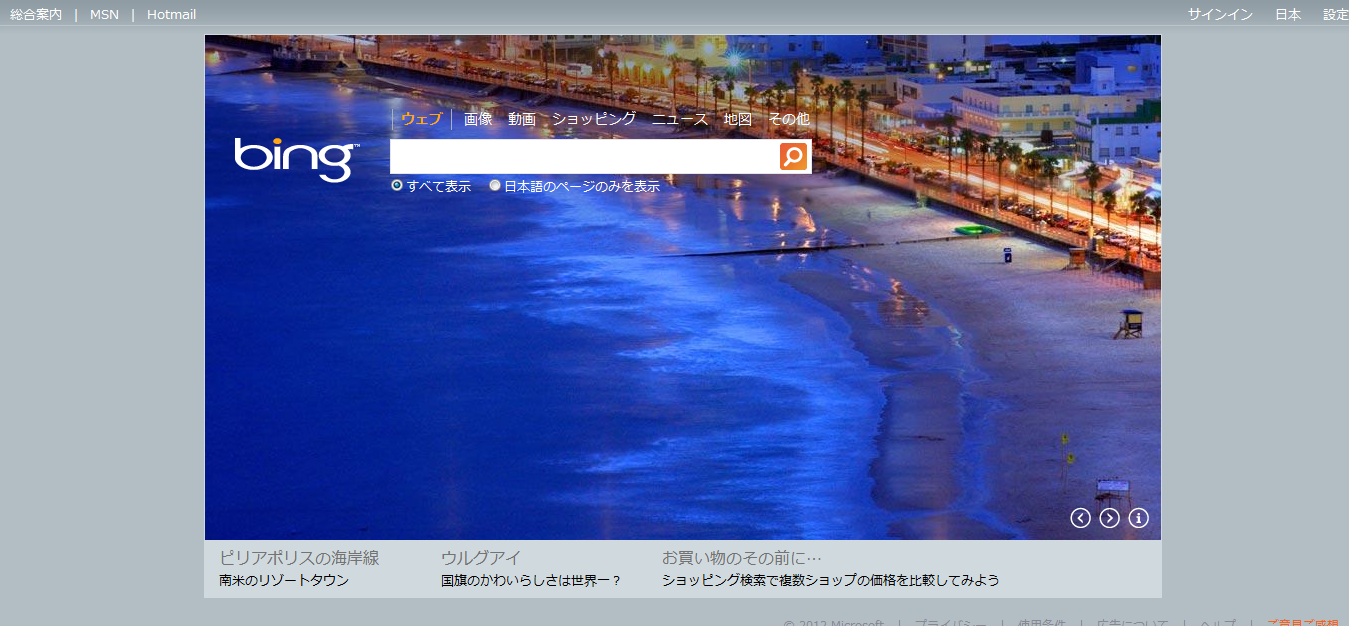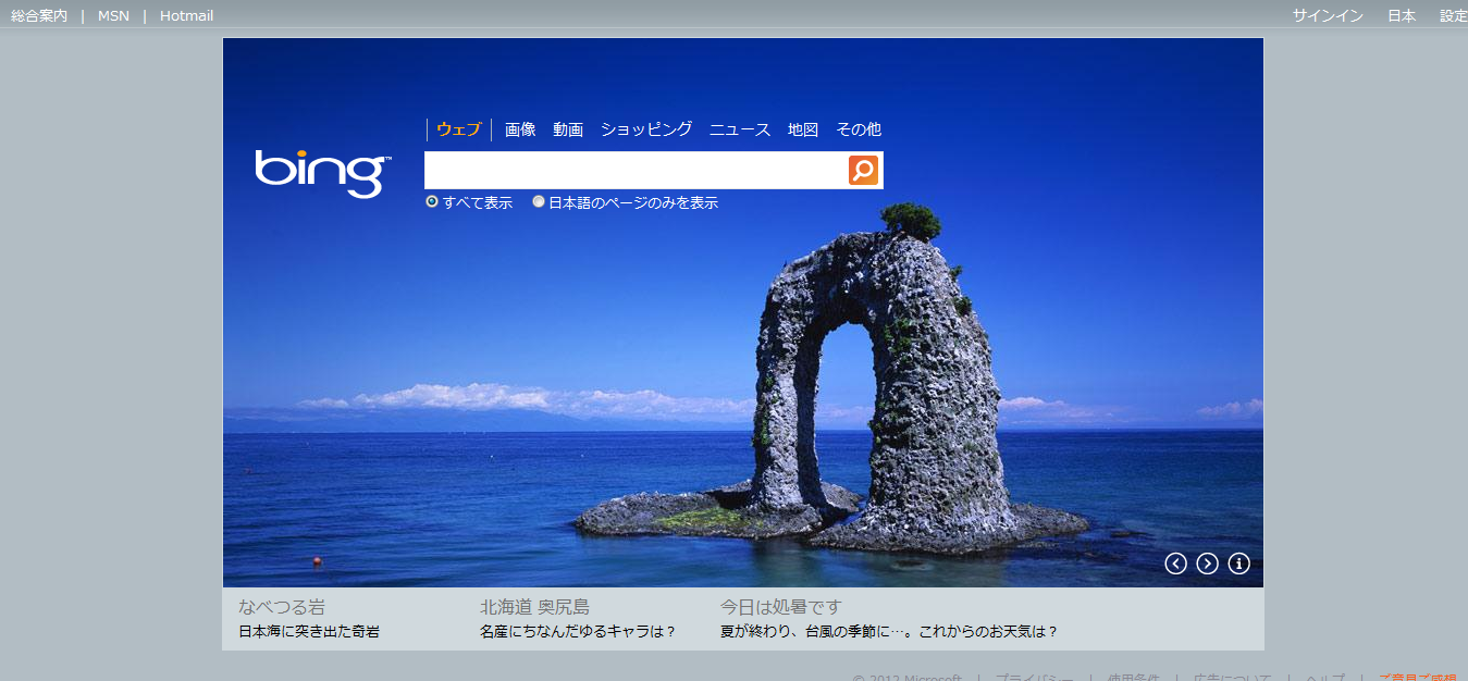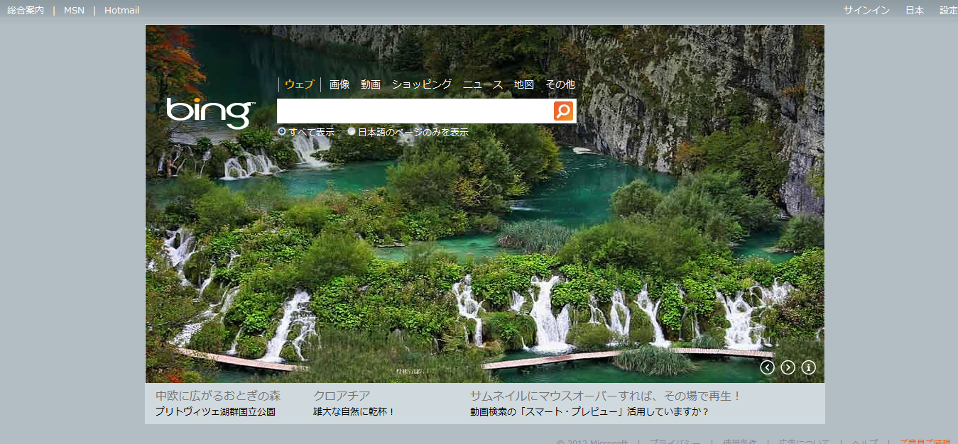 先日、Bingは日本と海外で画像が違う、という更新をしましたが、こういう風景も世界ごとに違ってBingユーザーは思い思いに自国の良さを噛み締めているのかも知れません。