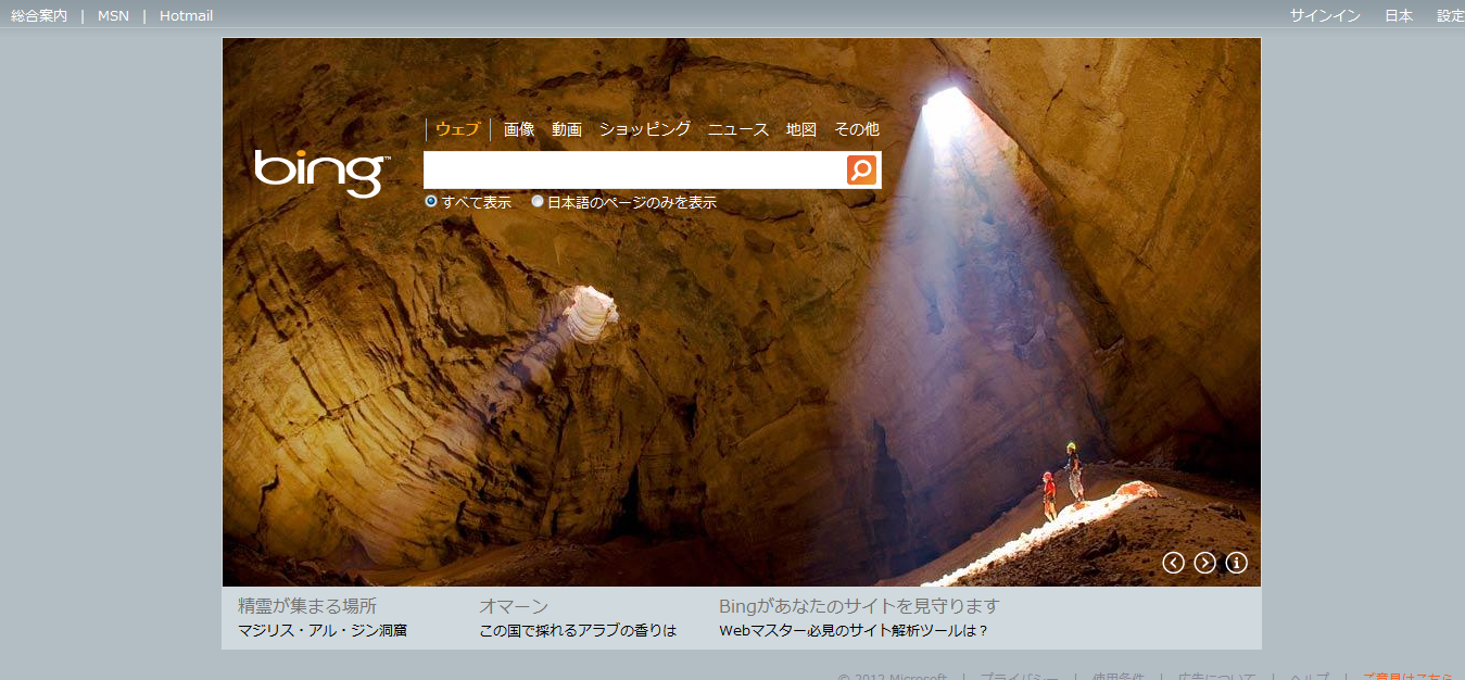 【絵画的なひまわり畑の写真など】先週のBing(8/27~9/2)背景画像まとめ Bing X Facebook はてブ Pocket LINE コピー 2012.09.25 こんにちは。 この週の末(9/2)からBing画像がワイド画面になっています。 実際に画像が全面に押し出されると迫力が違いますね。 次回更新分からはオールワイド画面になりますので乞うご期待! 2012/8/27~9/2 8/27 「マレー・リバー国立公園」 8/28 「マジリス・アル・ジン洞窟」 8/29 「カリタック・ビーチ灯台」 8/30 「ひまわり畑」 8/31 「干し草ロール」 9/1 「香港海洋公園」 9/2 「アンボワーズ城の橋」 それではまた次回! 先々週のBing(8/20~8/26)背景画像まとめ Bing