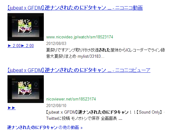 手元にあった動画検索結果が「通常検索の結果が全て動画で埋まるキーワード」(2012.9.17)のものなので若干古いかと思いますが、おそらく最近まで変化はなかったはずです。