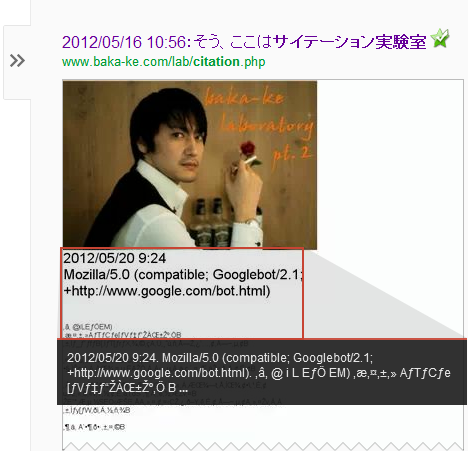 Google検索でインスタントプレビューをしながらページをスクロールしたら画像がバグった。… on Twitpic