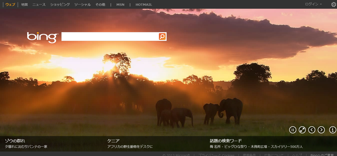 Bingこの週はアフリカゾウの絵に描いたような美しい風景が動画になって登場です。