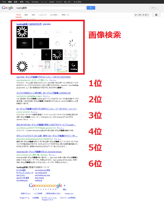 「loading画像」と検索した時にいつもと検索結果が違うとの情報をいただきました。