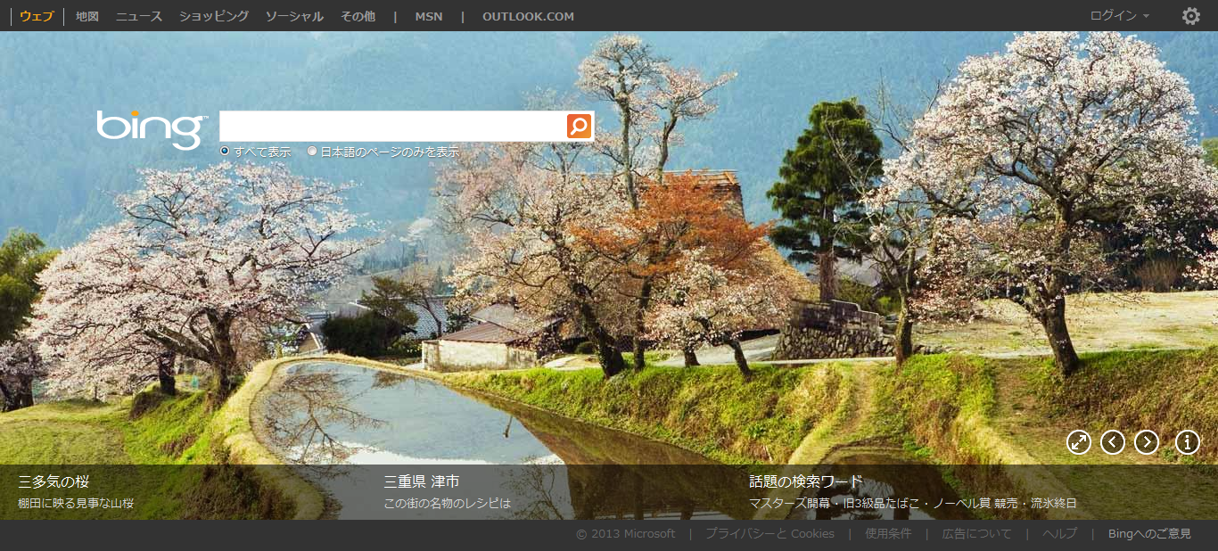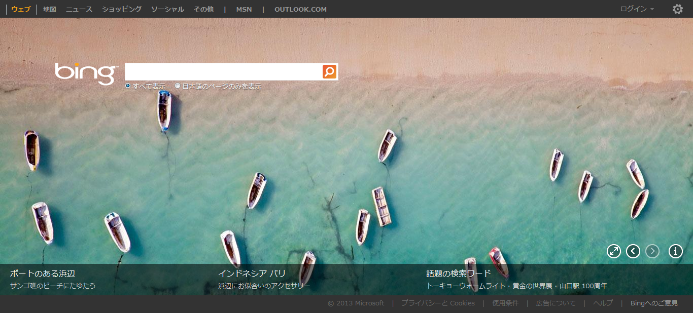 【元乃隅稲成神社など静かな写真を中心に】先週のBing(2013/4/8~2013/4/14)背景画像まとめ Bing X Facebook はてブ Pocket LINE コピー 2013.04.23 人工的なものが多い、けれども、人の気配はあまり感じられないような風景写真の多い週でした。 特に元乃隅稲成神社など、人が作ったものなのに、静かな空気感が漂っています。 ちょっと神秘的ですね。 2012/4/8~4/14 4/8 「ボートのある浜辺」 4/9 「ヤシの群生するサバンナ」 4/10 「アメリカグマの兄弟」 4/11 「元乃隅稲成神社」 4/12 「三多気の桜」 4/13 「お寺の鐘」 4/14 「セントラルパーク」 それではまた次回! 先々週のBing(4/1~4/7)背景画像まとめ Bing
