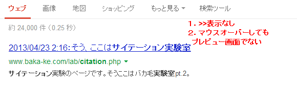 あの名前が思い出せないが、G検索結果がサイトのイメージが表示される「→」がないような。ってこれ前もツイートしたか。そしてまたキャッシュのリンクが「▼」にかわってる。