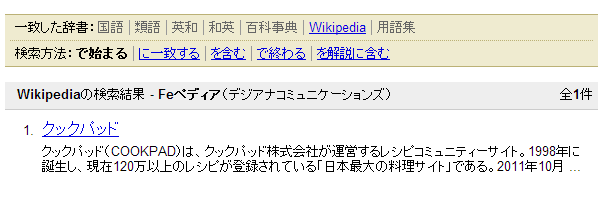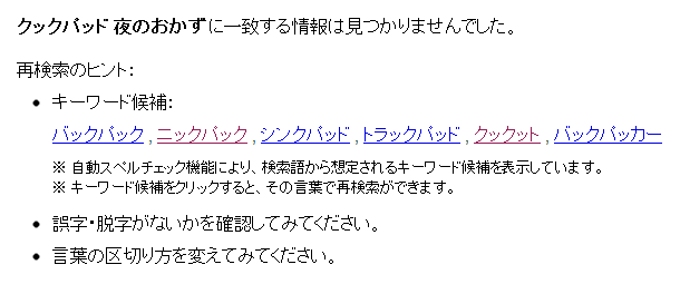 ちなみに「クックット」をクリックした結果は以下の通り。