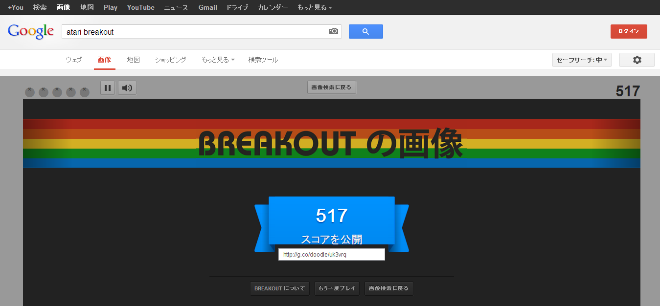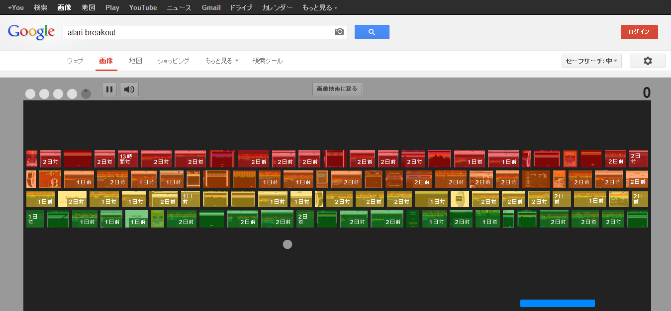 画像検索で「atari breakout」と検索するとブロック崩しゲームが開始されます。
