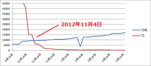 ※2013/5/19現在、バカ毛17,229、バカ198です。