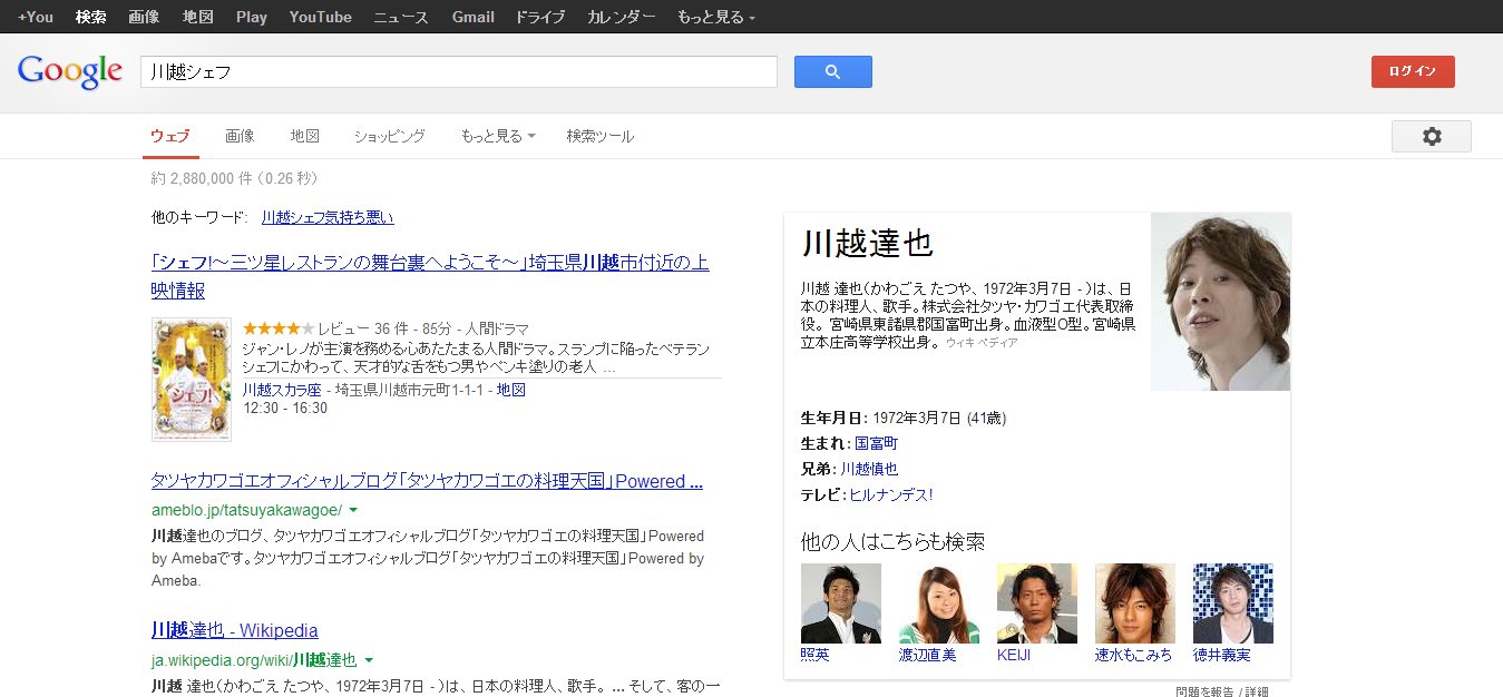 【2013.5.23】ナレッジグラフ「他の人はこちらも検索」の帯の色が黒く変化