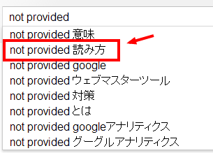not providedでキーワード検索を掛けるとサジェストに「not provided 読み方」というのが出てくるのですが、一通り見てみたところ発音の仕方という意味での「読み方」ではなく「読み解き方」の方の意味で捉えられていることが多い様子。