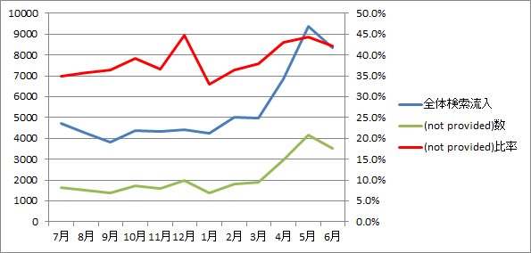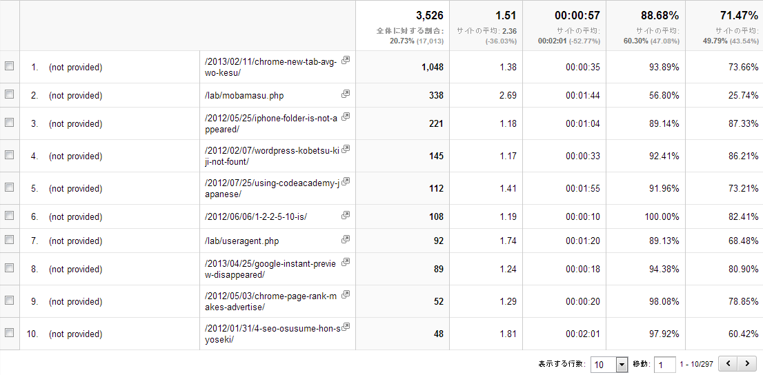 全体で見るとモバマスID検索ツールがトップなのですが(not privided)で限定するとこちらがトップの流入に入れ替わるのが面白いところ。