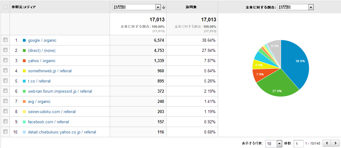 前月リファラー(参照元サイト/上位10件)