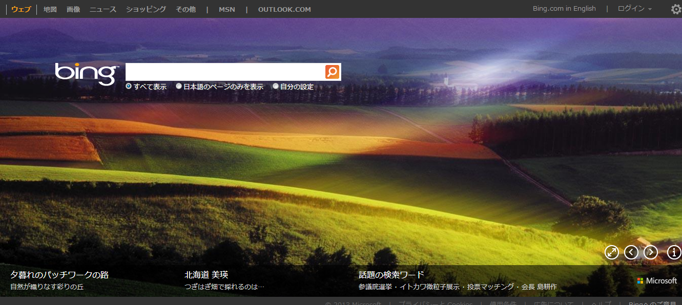 【北海道・美瑛やオルチャ渓谷など丘の写真を中心に】先週のBing(2013/7/15~2013/7/21)背景画像まとめ Bing X Facebook はてブ Pocket LINE コピー 2013.08.21 Bing背景画像です。 今回印象に残ったのは北海道・美瑛やオルチャ渓谷画像の丘の曲線を撮影したものです。 光の指し方とか、緑の広がり方とか、ただただ美しく・・・旅行に行きたくなりますね。 2013/7/15~7/21 7/15 「アメリカササゴイ」 7/16 「国立自然史博物館」 7/17 「干しタコ」 7/18 「ハバス滝」 7/19 「北海道美瑛」 7/20 「オルチャ渓谷の遠雷」 7/21 「石油タンカー」 それではまた次回! 先々週のBing(7/8 ~7/14)背景画像まとめ Bing