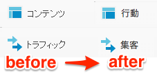 ※「コンテンツ」→「行動」へ
