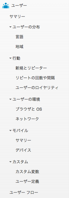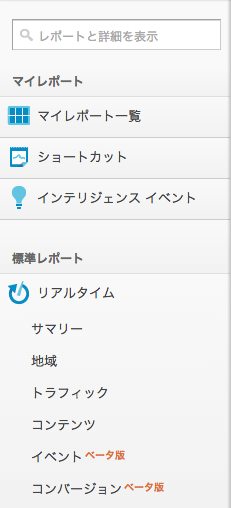 GoogleAnalyticsの左メニュー項目が変わったのでキャプチャなど。