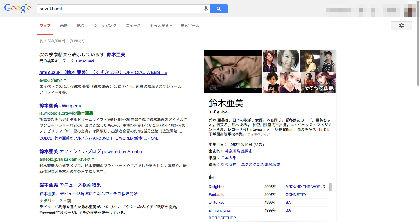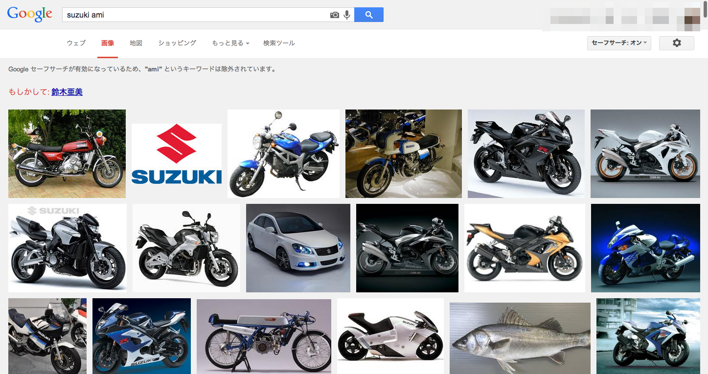 「suzuki ami」をセーフサーチオンで検索すると表示が消えてしまう件。