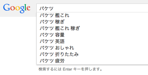 サジェストに関しては検索ユーザーの傾向として「バケツ」と入力している人は複合キーワードで艦これ系キーワードを探している人が多い、という話ではないか?