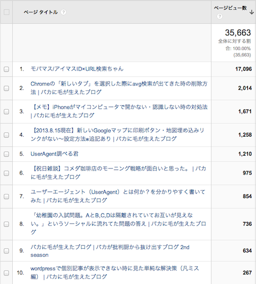 ちなみに閲覧コンテンツの上位陣はこんな感じ。