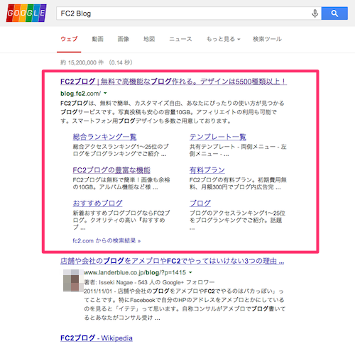 そうそう「fc2ブログ」で検索するとこういう結果が出て欲しかったんですよね。