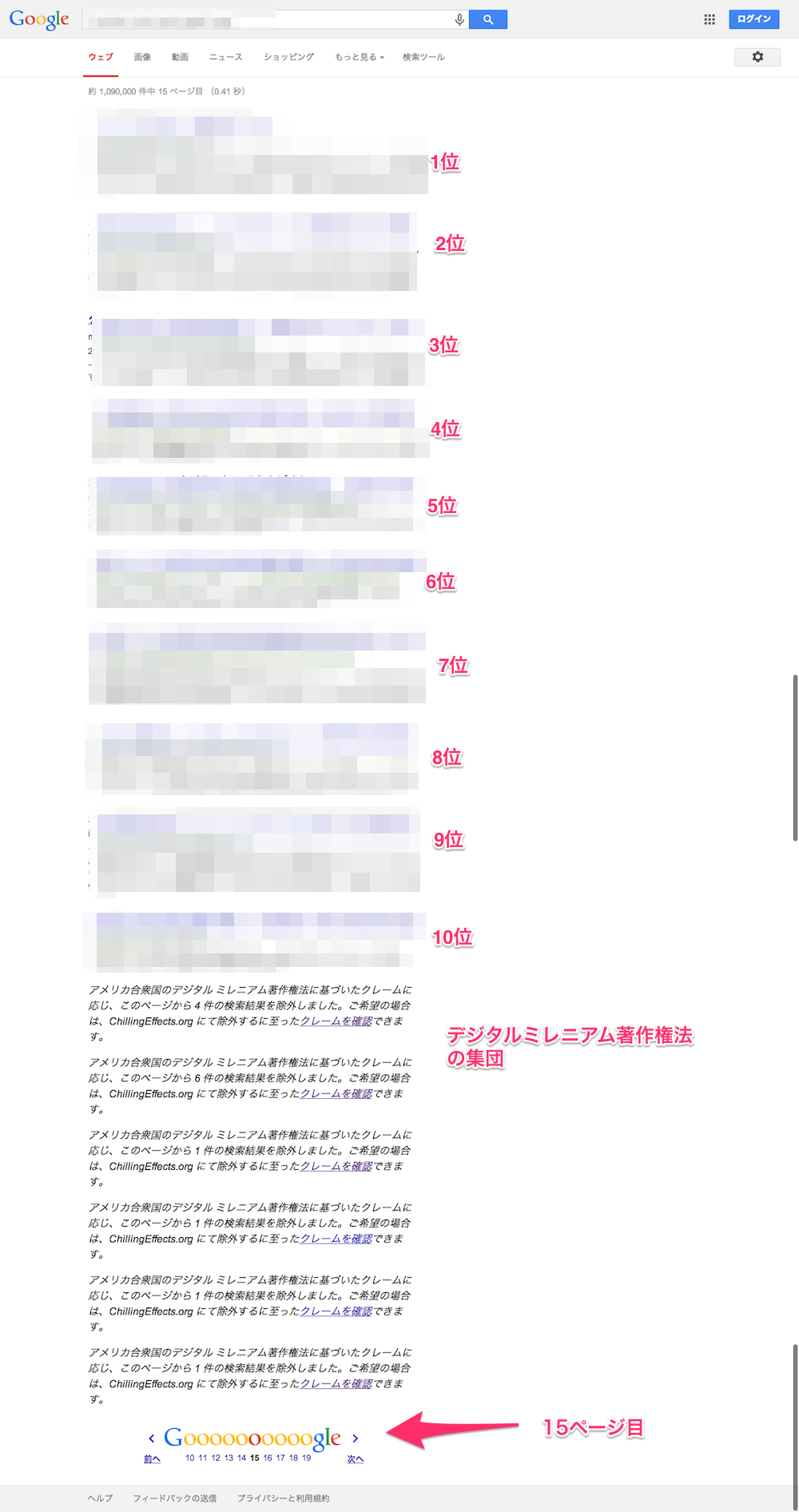 【日曜検索雑談】デジタルミレニアム著作権法の検索結果除外があっても1ページには10件