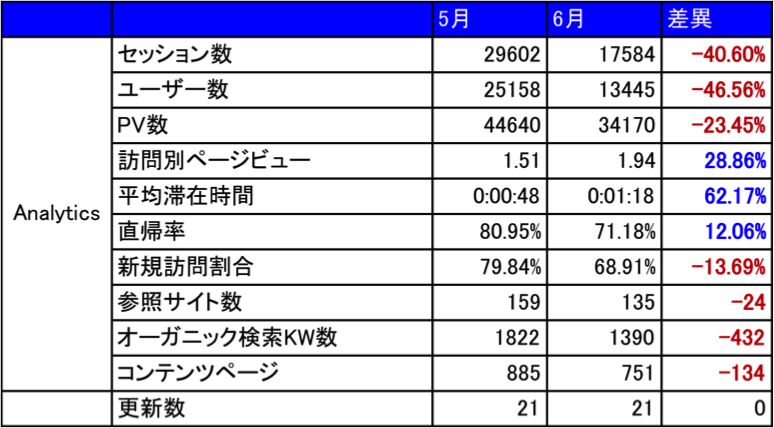 6月の数値推移