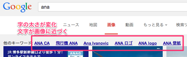 画像検索の関連検索キーワード部分の文字のデザインがちょっとだけ変更しています。