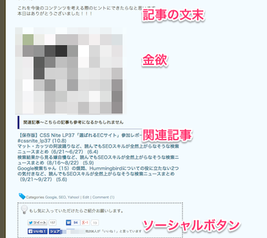 一応ソーシャルボタンがあるといえばあるのだけど改めて見るととんでもなく気付きづらい。