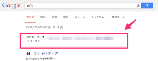 ところが記号(なんでもいいのですがここでは「℃」)を付けて検索するとここが表示されるようになります。