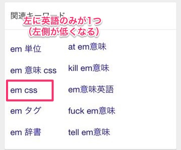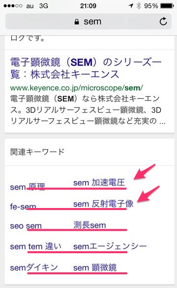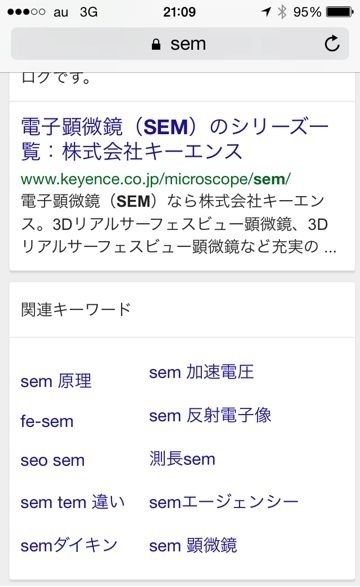 スマートフォンで「SEM」と検索すると関連検索の部分がズレるという事象を確認しました。