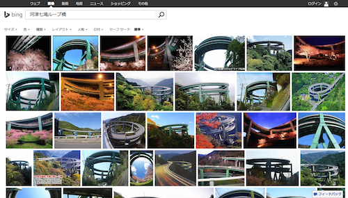 この週の背景画像で面白かったのは静岡県「河津七滝ループ橋」(かわづななだるるーぷきょう)。