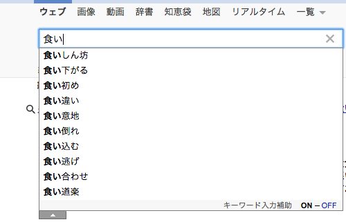 飲み食い、それぞれの検索エンジンからどういう言葉が想起されるのかを見てみました。