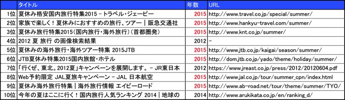 […] 【検索雑談】「2012 夏 旅行」の検索結果に見る季節・イベントのURL最適化 […]