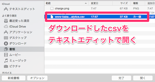 2.テキストエディットでダウンロードしたcsvを開きます。