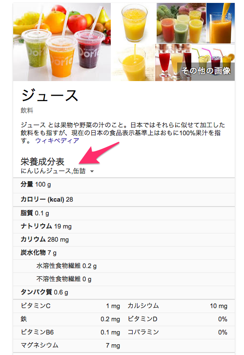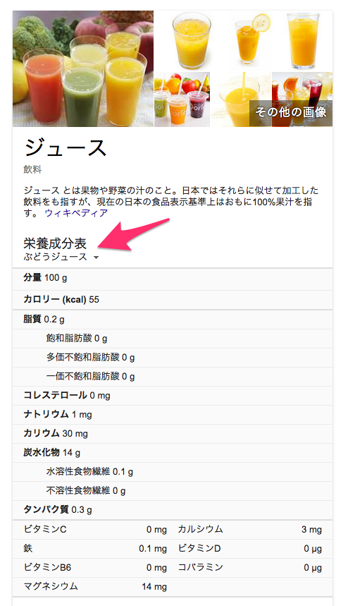 「ジュース」のナレッジグラフが変化したのでお知らせします。