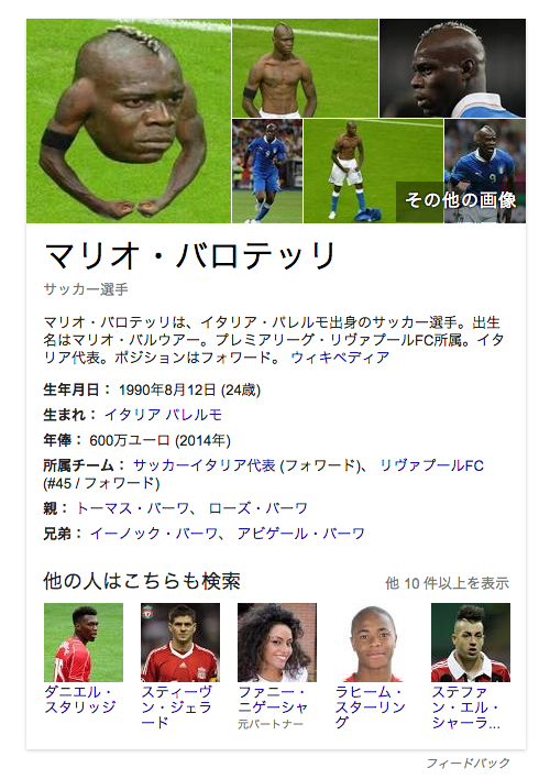 いや、もうすでに人間でもない。というナレッジグラフ画像を紹介。イタリアサッカー選手「バロッテリ」で検索 #金曜日のネタ帳