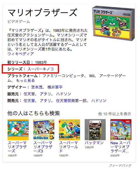 ナレッジパネルの項目でシリーズ名が「スーパーキノコ」