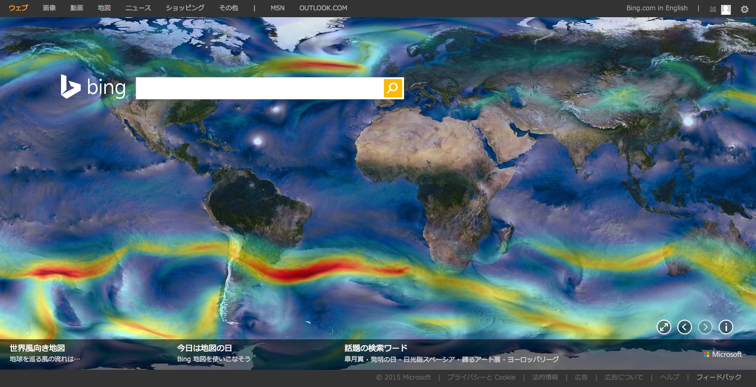 世界中の風向きが分かる「世界風向き地図」が面白い。Bing(2015/4/6~2015/4/19)背景画像まとめ