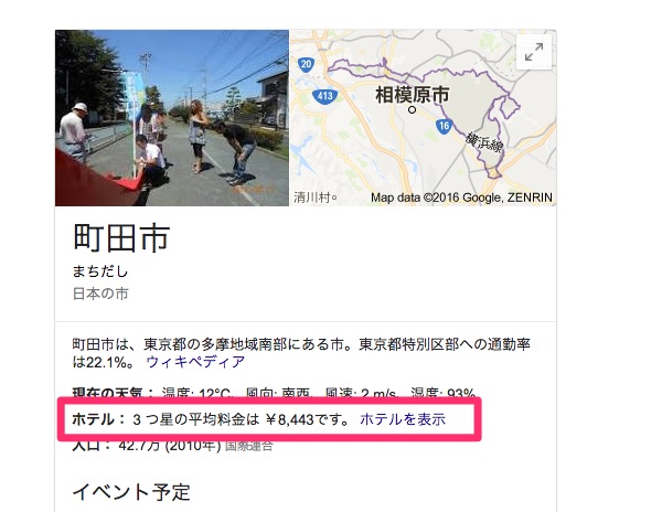 地域情報のナレッジグラフに、ホテルの平均料金なんて出てたっけ??#金曜日のネタ帳 pic.twitter.com/VKF0B2xzHD