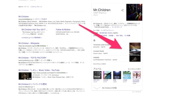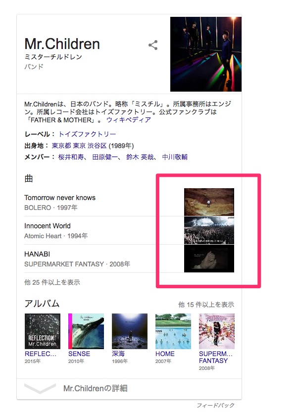 アーティスト名のナレッジグラフの曲サムネ