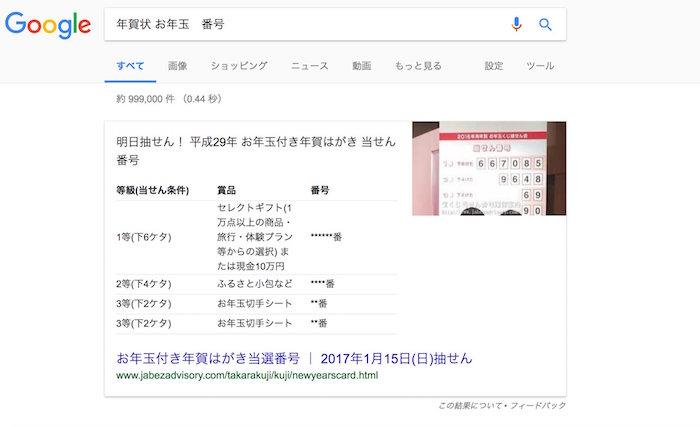 「年賀状 お年玉 番号」(現在)