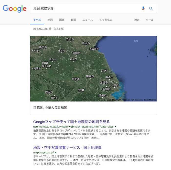 地図 航空写真 で検索すると航空写真がでてくる